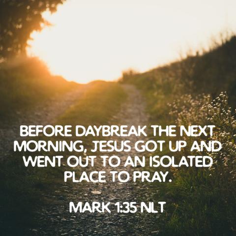 "'Before daybreak the next morning, Jesus got up and went out to an isolated place to pray.'"